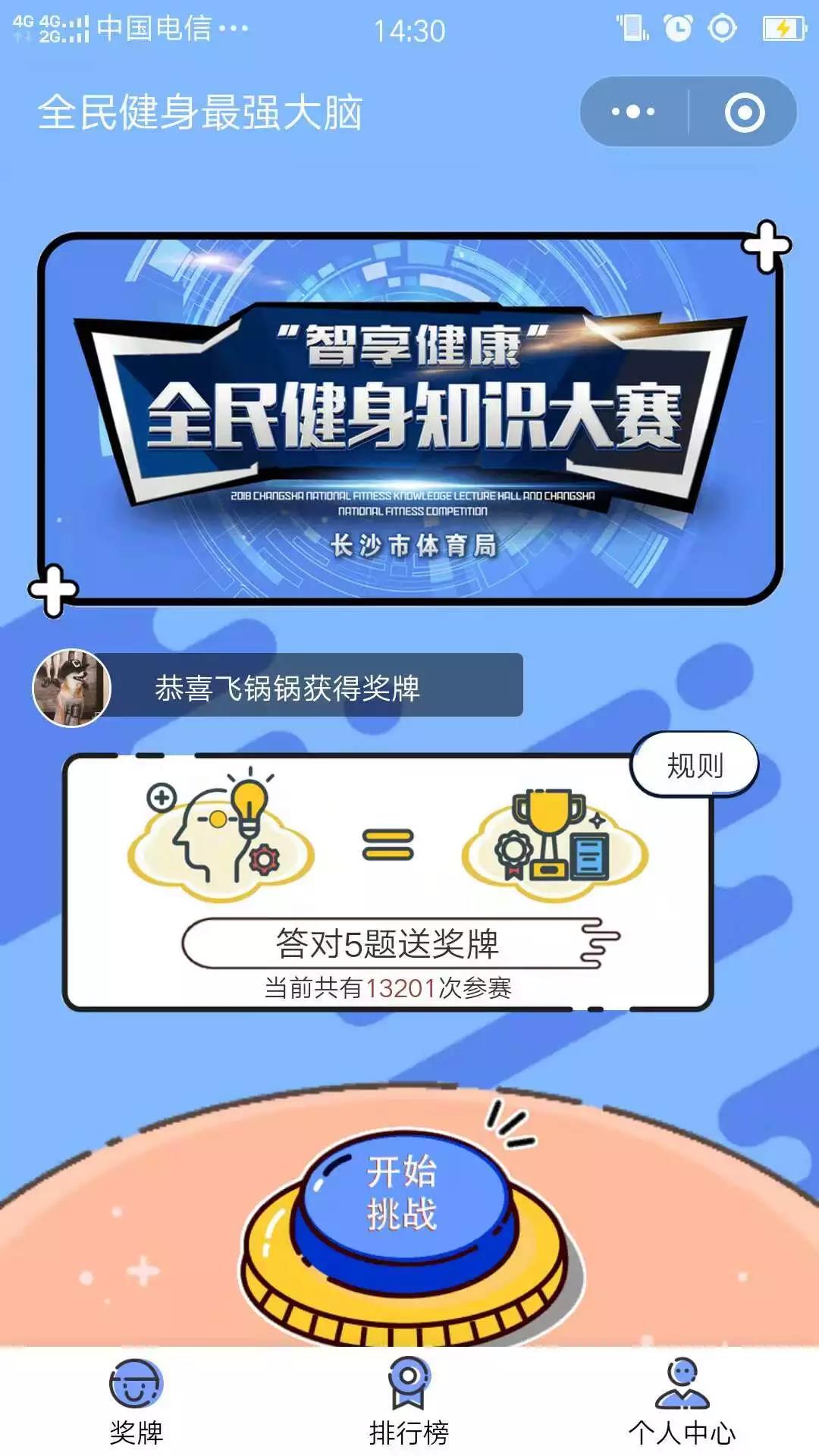 湖南聚之唯网络携手长沙市体育局打造答题小程序:全民健身最强大脑这款答题小程序是通过体育知识来创建的题库,所有的题目都是跟体育健身相关,想要答对这些题目,就看你是不是体育达人,大家可以挑战一下。当然答对...
