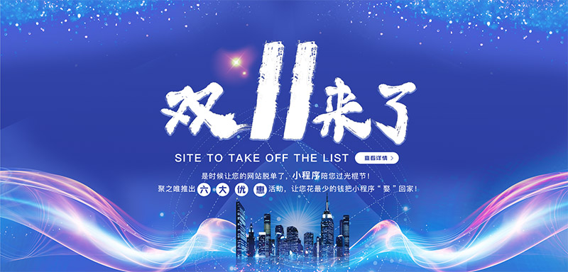 双十一到了,是时候让您的网站脱单了,小程序陪您过节!聚之唯推出六大优惠活动,让您花最少的钱把小程序“娶”回家一、定制三网合一企业官网:1、免费赠送价值¥8800元小程序一个2、赠送价值¥2800元的两年域名+两...