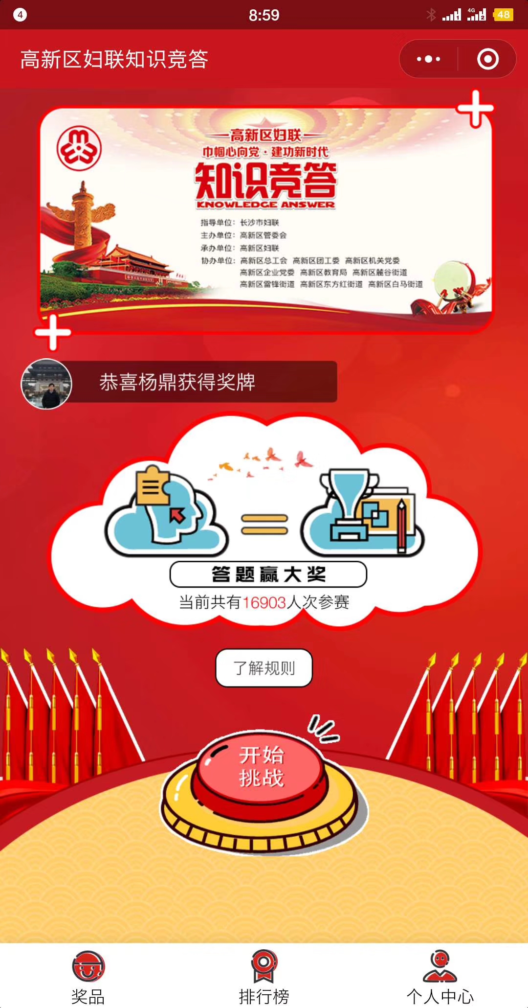 高新区妇联知识竞答互动活动小程序,由聚之唯开发!目前参与人数破16000人!参与答题获大奖!