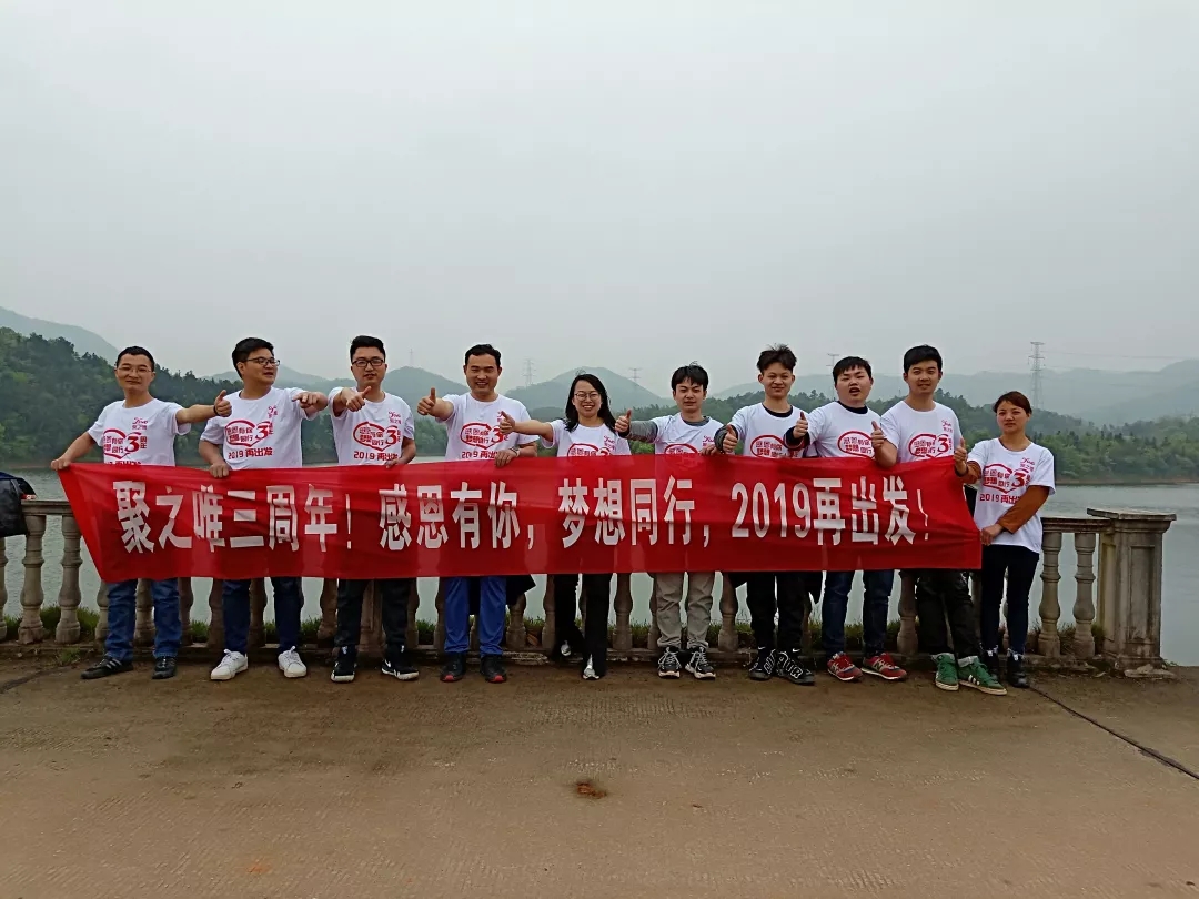 我们同样相信在创业的路上,“一个人可以走得很快,但一群人一定能走得更远”。我们是一群富有激情和梦想的年轻人,并有着坚毅的战斗力,无论遇到多大的困难,我们依然能够扭转战局。我和欧阳、志伟、榜爷、江超以及为聚之唯奋斗过的兄弟姐妹们都建立了深厚的战友情谊;一起战斗到深夜,有错误批评过,有问题一起扛过,大家不会有隔阂,因为我们深知我们的目标是一致的。记得在创业初期,大家房子都还没装修好,我住在星沙距离公司比较远,那时候自己经常加班到深夜,不得不忙完工作后跟随欧阳去他的几平米的小租房睡。遇到过两次印象比较深的经历,因为一个小床要挤下两个大汉这是很为难小床的,睡到半夜欧阳直接从塌陷的床上滚下去了,吓得我也从睡梦中醒来,稍微整理下后继续睡;另一次是大热天,得去卫生间洗澡,结果厕所门坏了,锁住了进不去,差点就没澡洗了,搞了大半天后房东终于用菜刀搞开了;当然后来就没我什么事了,因为欧阳后面转战在公司直接睡了。还有其他人都经历了让自己思想更成熟,磨炼心智,增强责任感的事情,现在回忆起来都是满满的人生财富。