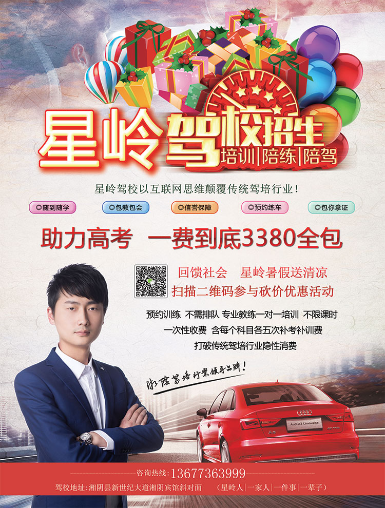 星岭驾校为高考加油,回馈社会,特举办此次报考驾照砍价活动。