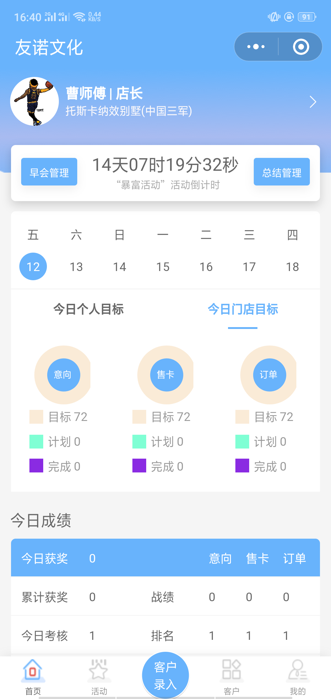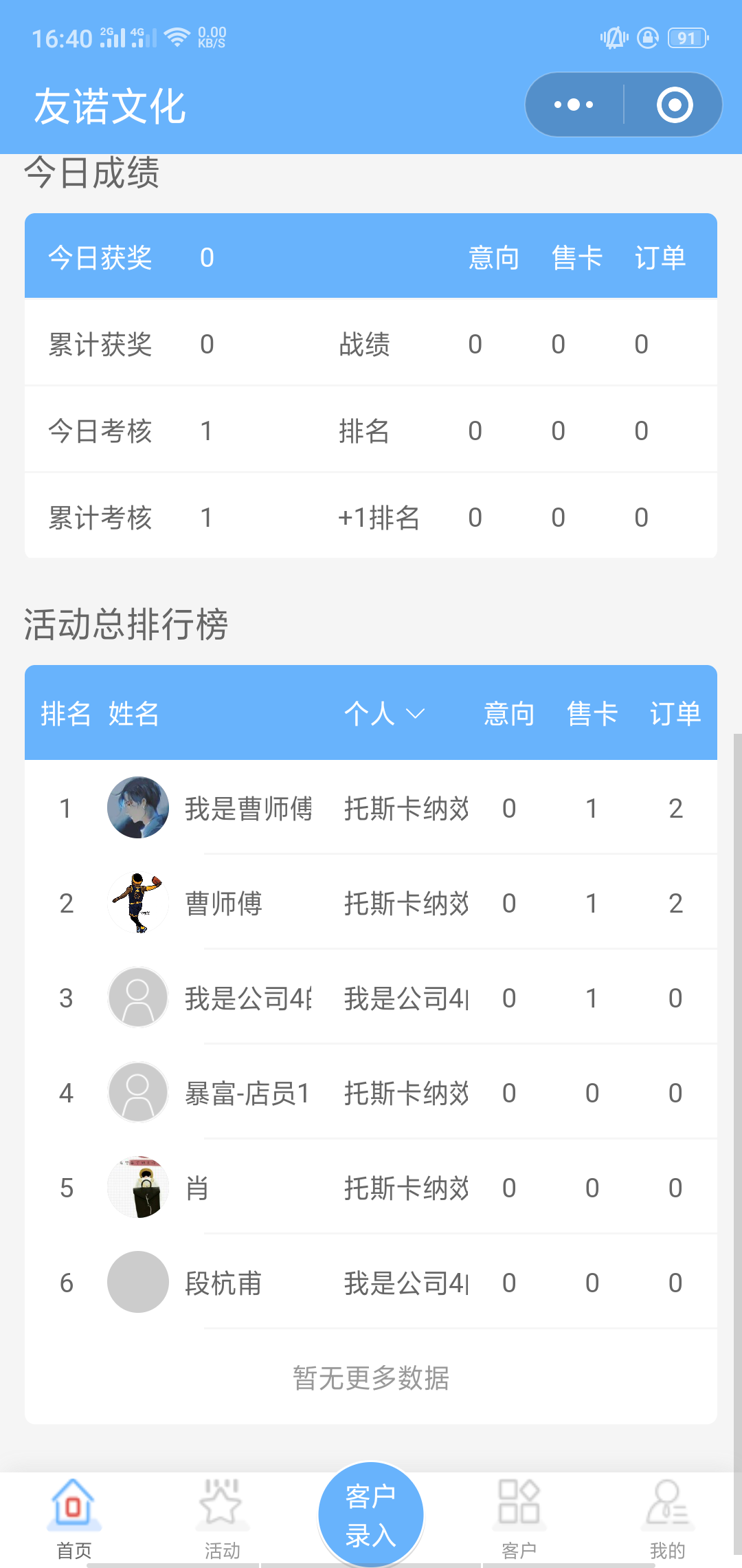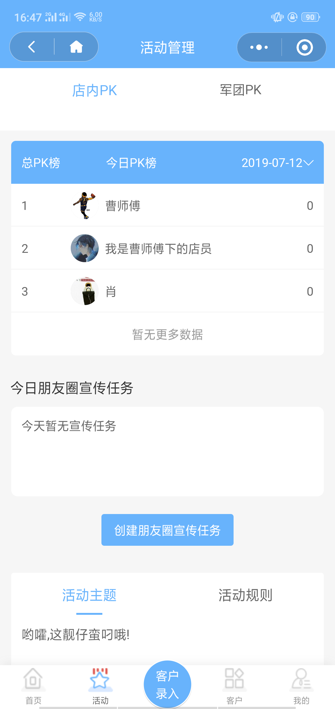然后会有活动排行,根据每天员工的工作指标来进行评比,在前几名的员工可以的到奖励。