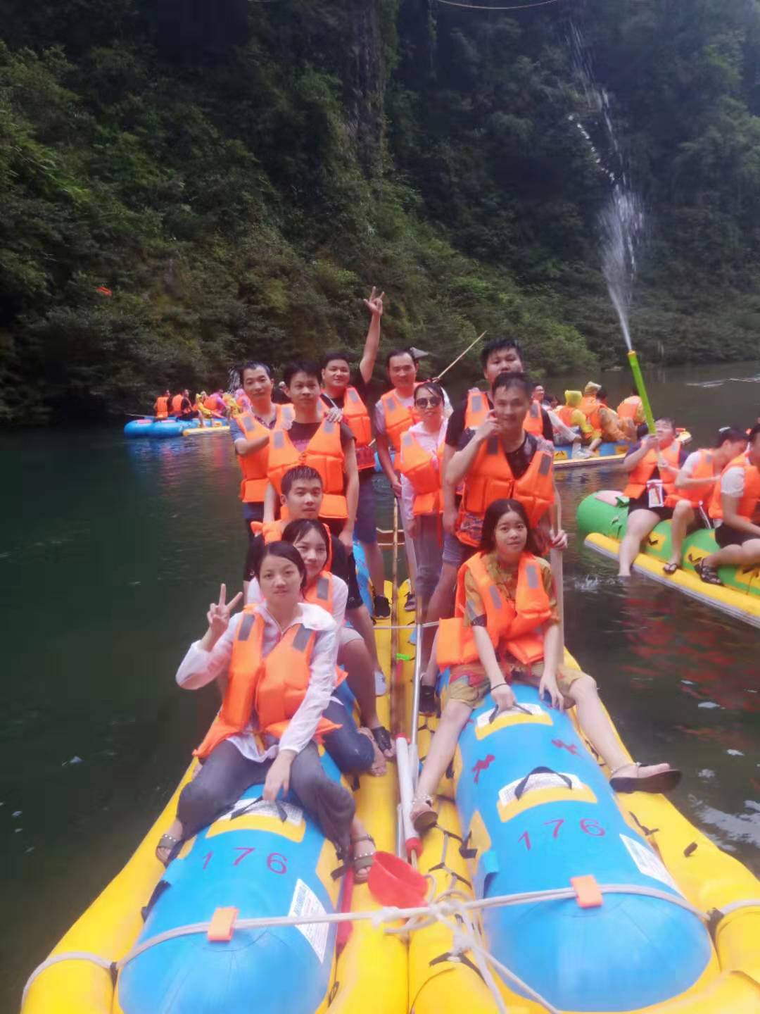今天开启了聚之唯团队2天一晚的年中活动!趁年轻,就该激情的玩努力的干!一路下来风景真的美不胜收,水质清澈见底,惹人喜爱!全程在峡谷中间漂流三小时,旅途有多个瀑布,倾泻而下,十分清凉!“中流击水,浪遏飞...