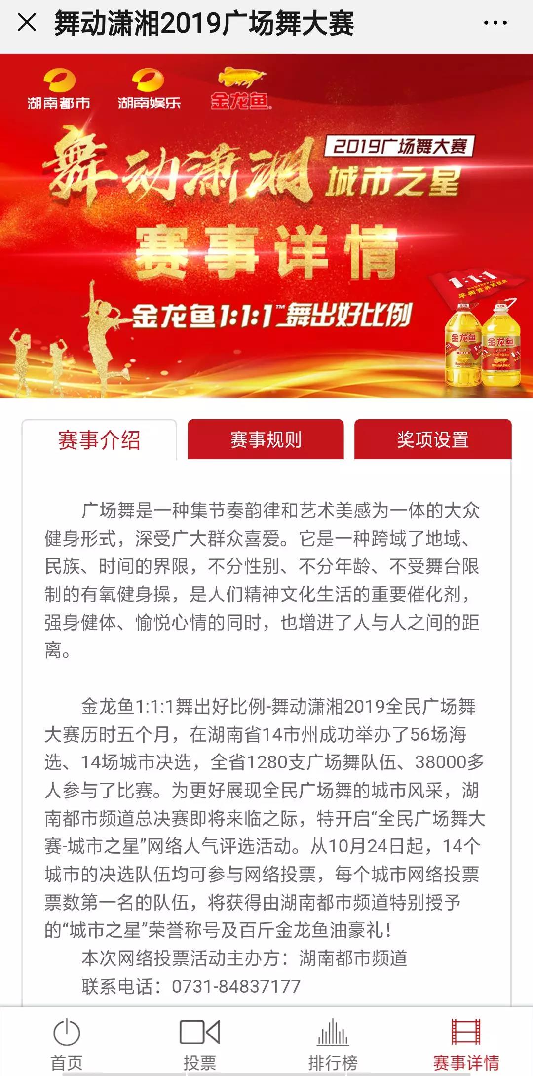 由湖南体育总会主办,湖南广电都市娱乐频道联合承办聚之唯网络提供技术支持2019舞动潇湘 全民广场舞大赛  14个地州市   “城市之星“网络投票10月24日正式开启截至到10月30日(昨天)中午活动圆满...
