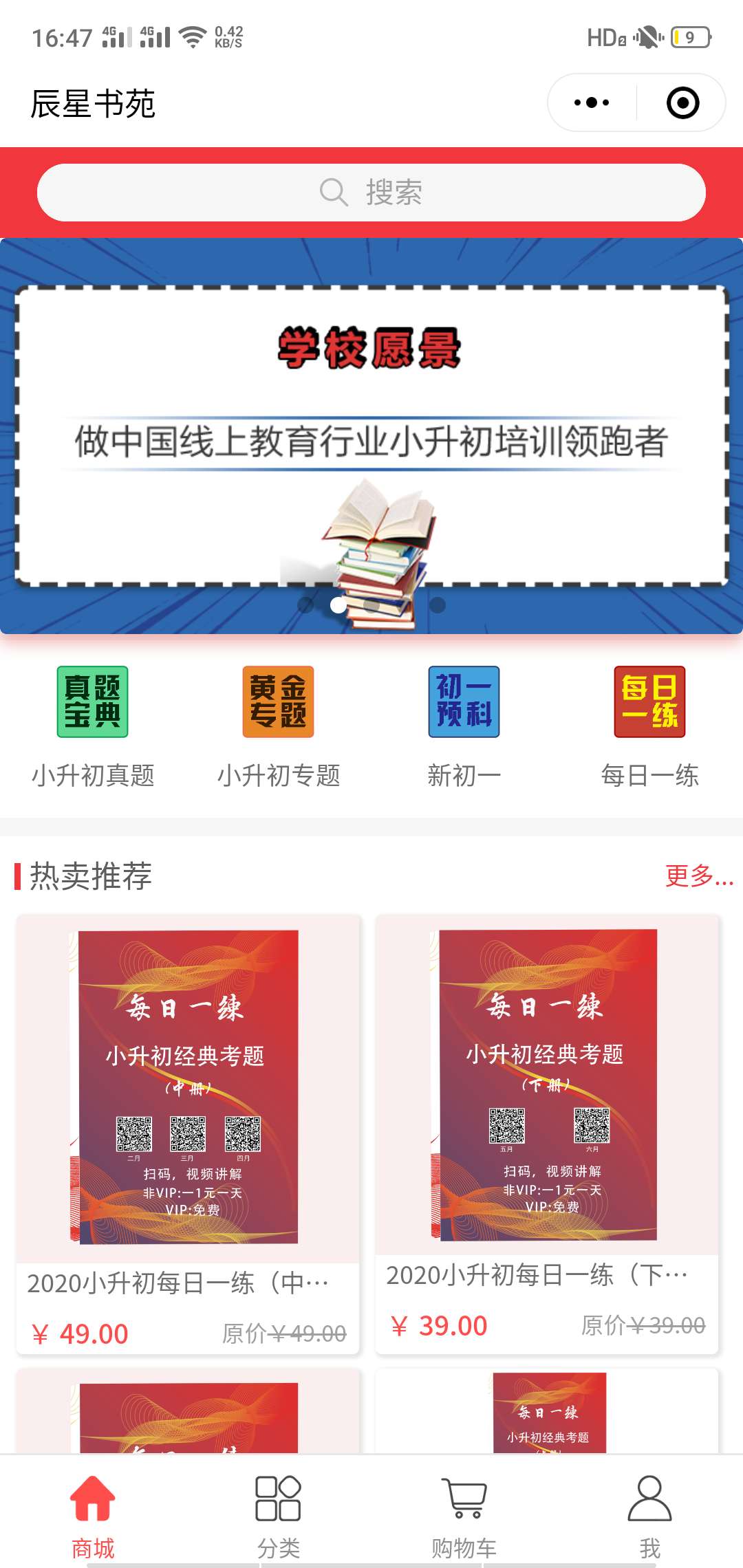 聚之唯网络老客户辰星教育之前与我们合作的付费题库系统,在整个合作期间对我们的技术和服务都是很满意的!上周,也是毫不犹豫的再次选择与我们合作了一小程序商城项目,主要用于推广销售中小学生的书籍资料等