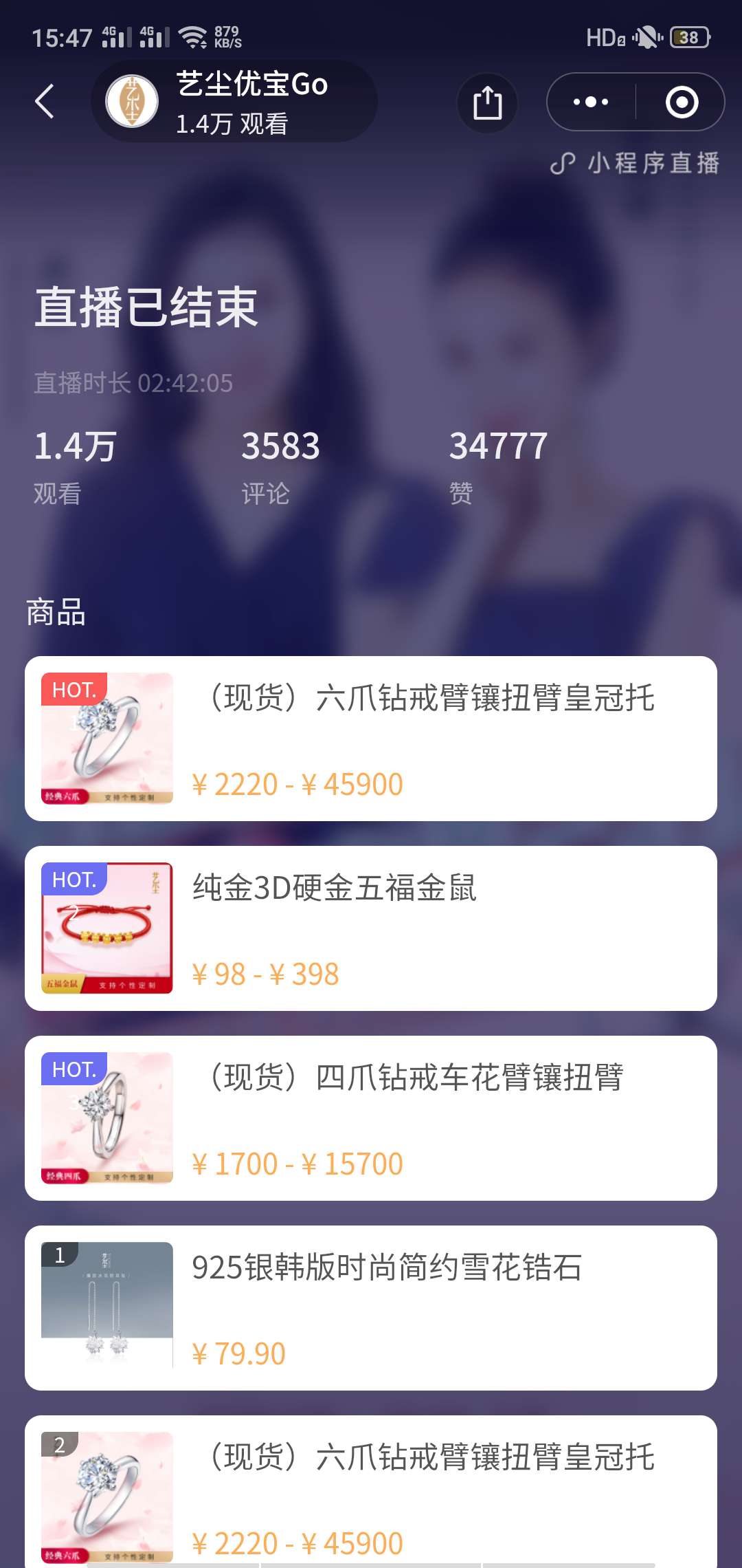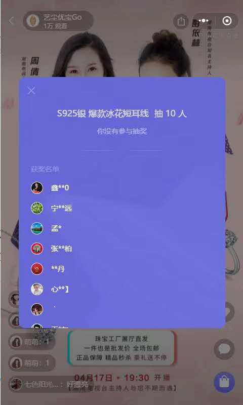 您收到一份聚之唯&艺尘珠宝首场小程序直播战绩报告!