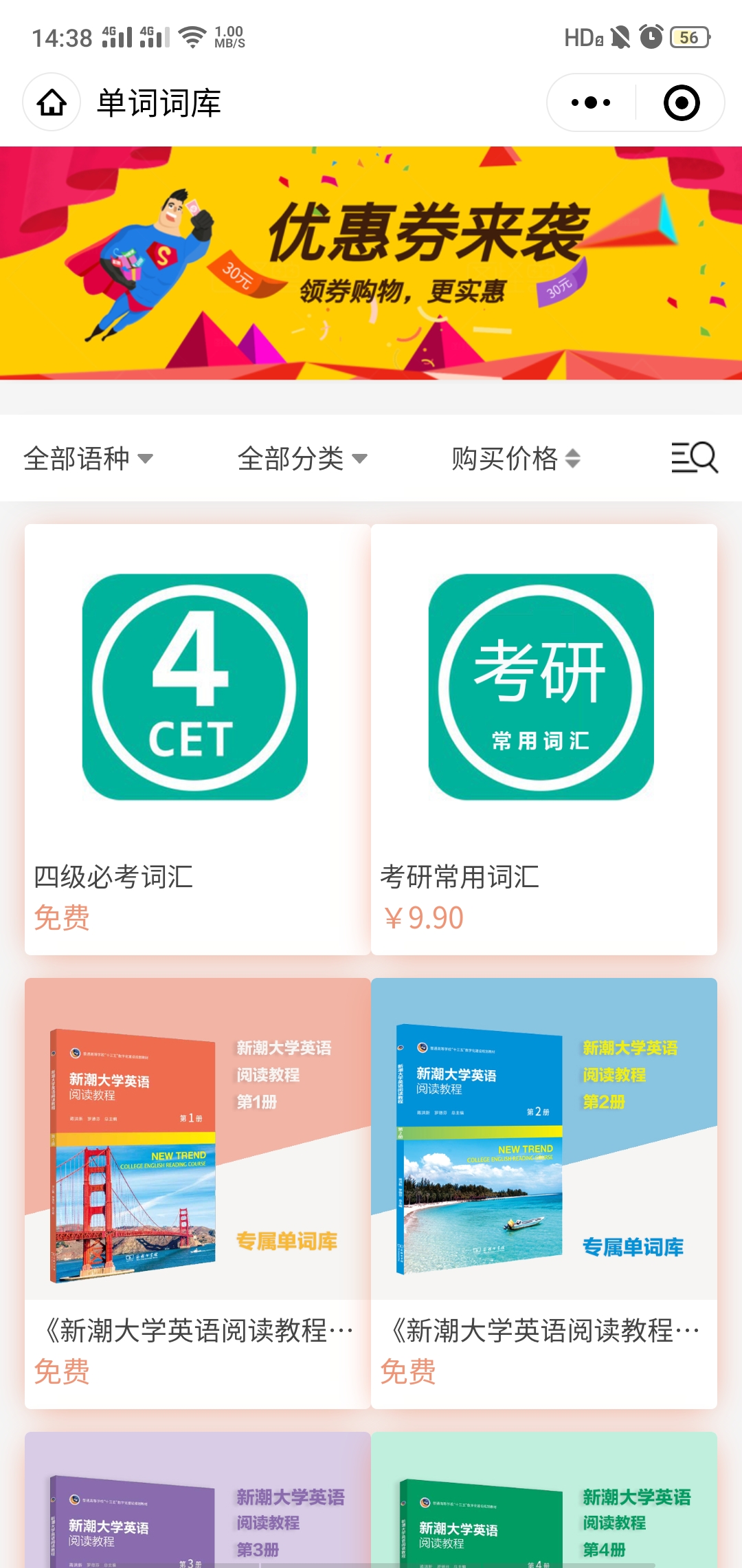 为更好的结合线下纸质教材,优化用户学习模式,我司先后为其开发了三文学堂公众号开发、考试系统、线上知识付费小程序、背单词小程序的开发。