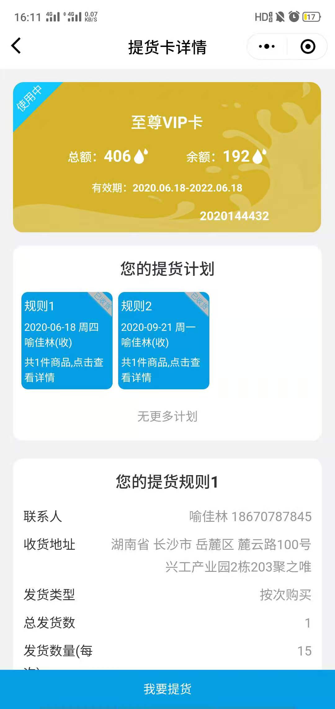 提货计划创建完,用户提货卡的产品总量便对应减少。