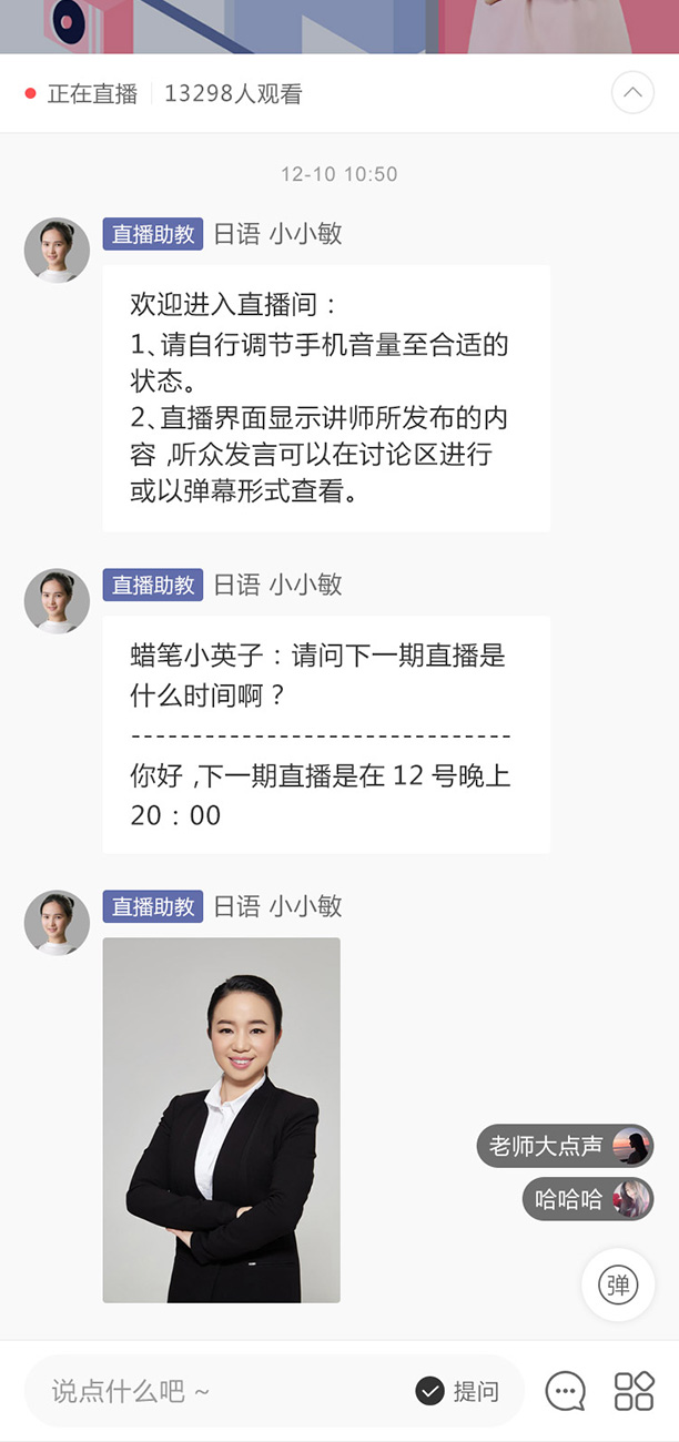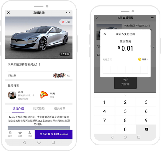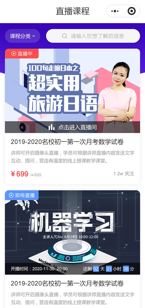 支持线上直播课程